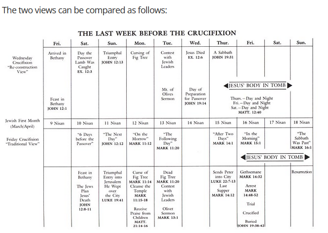 First, they insist that this is the literal meaning of the phrase “three days and nights.” Second, they point out that, on the view that Jesus was crucified on Friday, there is no explanation for what He did on Wednesday. All other days are accounted for. Third, they argue that the passover was not a fixed day (Friday), but floated.